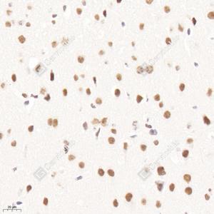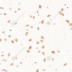 IHC检测PQBP1蛋白(货号 GB113464). 样品: 大鼠脑, 4%多聚甲醛 (货号G1101) 固定12-24小时. 抗原修复: 柠檬酸抗原修复液(干粉, pH 6.0) (G1201), 98℃, 20分钟. —抗: 1: 6000稀释, 4℃ 孵育过夜. 二抗: HRP标记山羊抗兔IgG (H+L) (货号GB23303), 1: 200稀释, 室温孵育1小时. |