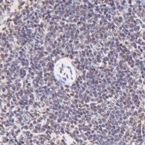 IHC检测PQBP1蛋白(货号 GB113464). 样品: 大鼠脾, 4%多聚甲醛 (货号G1101) 固定12-24小时. 抗原修复: 柠檬酸抗原修复液(干粉, pH 6.0) (G1201), 98℃, 20分钟. —抗: 1: 4000稀释, 4℃ 孵育过夜. 二抗: HRP标记山羊抗兔IgG (H+L) (货号GB23303), 1: 200稀释, 室温孵育1小时. |