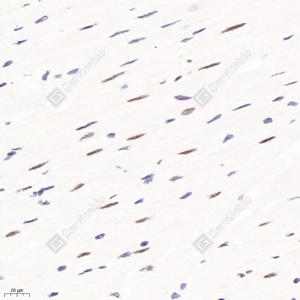 IHC检测PQBP1蛋白(货号 GB113464). 样品: 大鼠心, 4%多聚甲醛 (货号G1101) 固定12-24小时. 抗原修复: 柠檬酸抗原修复液(干粉, pH 6.0) (G1201), 98℃, 20分钟. —抗: 1: 4000稀释, 4℃ 孵育过夜. 二抗: HRP标记山羊抗兔IgG (H+L) (货号GB23303), 1: 200稀释, 室温孵育1小时. |