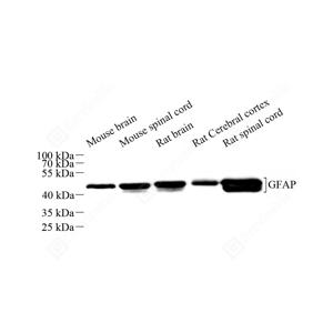 WB检测GFAP蛋白(货号 ZB12096-HRP). 样品: 经RIPA裂解液(货号G2002)处理的蛋白质. 封闭: 3%脱脂牛奶(货号GC310001)溶于TBST溶液, 室温孵育1小时. 抗体: HRP标记的抗GFAP蛋白 抗体 1: 1000稀释, 4℃ 孵育过夜. |