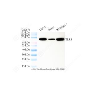 | 孵化条件 | 封闭后, 将膜与HRP标记的抗TLR4 抗体(ZB11519-HRP)在室温(20-25℃)孵育3-4小时或4℃过夜, 随后用TBST缓冲液洗涤3次, 每次5分钟. | ||