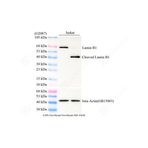 | WB检测Lamin B1蛋白(货号 ZB151802-HRP). 样品: 经RIPA裂解液(货号G2002)处理的蛋白质. 封闭: 3% BSA(货号GC305010)的PBS溶液, 室温孵育30分钟. 抗体: HRP标记的抗Lamin B1蛋白抗体 1: 1000稀释, 4℃ 孵育过夜. |
