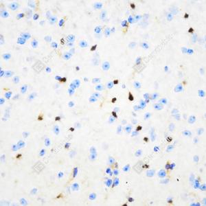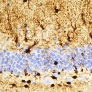 IHC检测S100 beta蛋白(货号 GB15360). 样品: 小鼠脑, 4%多聚甲醛 (货号G1101) 固定12-24小时. 抗原修复: Tris-EDTA抗原修复液(pH 9.0) (G1203), 98℃, 20分钟. —抗: 1: 1000稀释, 4℃ 孵育过夜. 二抗: HRP标记山羊抗小鼠IgG (H+L) (货号GB23301), 1: 200稀释, 室温孵育1小时. |