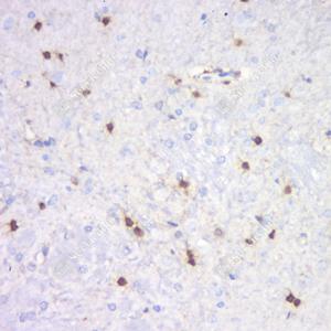 IHC检测S100 beta蛋白(货号 GB12360). 样品: 大鼠脑, 4%多聚甲醛 (货号G1101) 固定12-24小时. 抗原修复: 柠檬酸抗原修复液(干粉, pH 6.0) (G1201), 98℃, 20分钟. —抗: 1: 1000稀释, 4℃ 孵育过夜. 二抗: HRP标记山羊抗小鼠IgG (H+L) (货号GB23301), 1: 200稀释, 室温孵育1小时. |