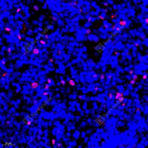 | IF检测Wilms Tumor Protein蛋白(货号 GB11382)(红色). 样品: 小鼠脾, 4%多聚甲醛 (货号G1101) 固定12-24小时. 抗原修复: Tris-EDTA抗原修复液(pH 9.0) (G1203), 98℃, 20分钟. 封闭: 3% BSA(货号GC305010)的PBS溶液, 室温孵育30分钟. —抗: 1: 100稀释, 4℃ 孵育过夜. 二抗: Cy3标记山羊抗兔IgG (H+L) (货号GB21303), 1: 300稀释, 室温孵育1小时. |