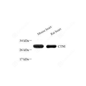 WB检测Cardiac Troponin I蛋白(货号 GB112408). 样品: 经RIPA裂解液(货号G2002)处理的蛋白质. 封闭: 3%脱脂牛奶(货号GC310001)溶于TBST溶液, 室温孵育1小时. —抗: 1: 500稀释, 4℃ 孵育过夜. 二抗: HRP标记山羊抗兔IgG (H+L) (货号GB23303), 1: 5000稀释, 室温孵育1小时. |