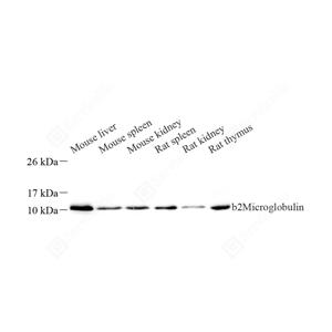 WB检测beta 2 Microglobulin蛋白(货号 GB112345). 样品: 经RIPA裂解液(货号G2002)处理的蛋白质. 封闭: 封闭: 3%脱脂牛奶(货号GC310001)溶于TBST溶液, 室温孵育1小时. —抗: 1: 500稀释, 4℃ 孵育过夜. 二抗: HRP标记山羊抗兔IgG (H+L) (货号GB23303), 1: 5000稀释, 室温孵育1小时. |