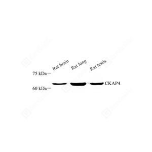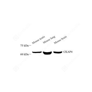 CKAP4, also named as Climp-63, is a 63 kDa cytoskeleton-linking membrane protein. It is the partner of triadin. CKAP4 is responsible for this association of triads and microtubules. CKAP4 is a substrate of DHHC2, a putative tumor suppressor. CK MNF116 and p63 were useful in identifying squamous cell carcinomas with single cell infiltration. Those results suggested a role of CKAP4/p63 in tumor.