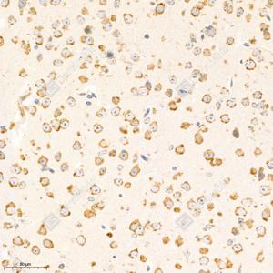 IHC检测CKAP4蛋白(货号 GB111437). 样品: 小鼠脑, 4%多聚甲醛 (货号G1101) 固定12-24小时. 抗原修复: 柠檬酸抗原修复液(干粉, pH 6.0) (G1201), 98℃, 20分钟. —抗: 1: 1000稀释, 4℃ 孵育过夜. 二抗: HRP标记山羊抗兔IgG (H+L) (货号GB23303), 1: 200稀释, 室温孵育1小时. |