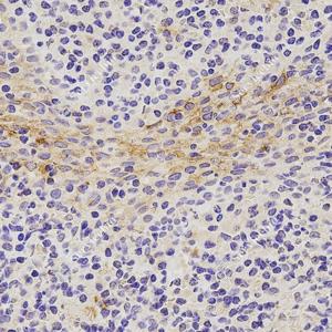 IHC检测ADAMTSL1蛋白(货号 GB115331). 样品: 人扁桃体, 4%多聚甲醛 (货号G1101) 固定12-24小时. 抗原修复: Tris-EDTA抗原修复液(pH 9.0) (G1203), 98℃, 20分钟. —抗: 1: 1000稀释, 4℃ 孵育过夜. 二抗: HRP标记山羊抗兔IgG (H+L) (货号GB23303), 1: 200稀释, 室温孵育1小时. |