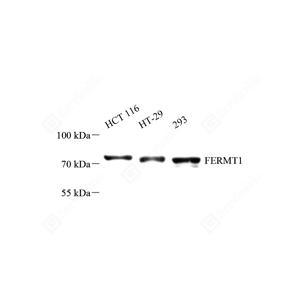 WB检测Kindlin-1蛋白(货号 GB114813). 样品: 经RIPA裂解液(货号G2002)处理的蛋白质. 封闭: 封闭: 3%脱脂牛奶(货号GC310001)溶于TBST溶液, 室温孵育1小时. —抗: 1: 2000稀释, 4℃ 孵育过夜. 二抗: HRP标记山羊抗兔IgG (H+L) (货号GB23303), 1: 5000稀释, 室温孵育1小时. |