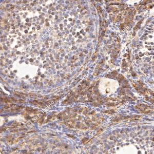 IHC检测SDCCAG8蛋白(货号 GB114950). 样品: 小鼠卵巢, 4%多聚甲醛 (货号G1101) 固定12-24小时. 抗原修复: Tris-EDTA抗原修复液(pH 9.0) (G1203), 98℃, 20分钟. —抗: 1: 1000稀释, 4℃ 孵育过夜. 二抗: HRP标记山羊抗兔IgG (H+L) (货号GB23303), 1: 200稀释, 室温孵育1小时. |