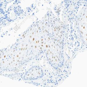 IHC检测HIF-1 alpha蛋白(货号 YB151350). 样品: 人食管, 4%多聚甲醛 (货号Y1112) 固定12-24小时. 抗原修复: Tris-EDTA抗原修复液(pH 9.0) (Y1214), 98℃, 20分钟. —抗: 1: 1000稀释, 4℃ 孵育过夜. 二抗: S-vision免疫组化多聚二抗(山羊抗兔),即用型 (货号Y1313), 室温孵育20分钟. |
