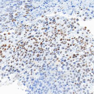 IHC检测HIF-1 alpha蛋白(货号 YB151350). 样品: 小鼠4T1细胞皮下裸鼠模型, 4%多聚甲醛 (货号Y1112) 固定12-24小时. 抗原修复: Tris-EDTA抗原修复液(pH 9.0) (Y1214), 98℃, 20分钟. —抗: 1: 1000稀释, 4℃ 孵育过夜. 二抗: S-vision免疫组化多聚二抗(山羊抗兔),即用型 (货号Y1313), 室温孵育20分钟. |