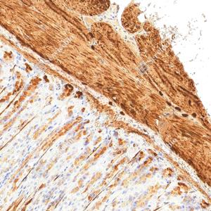 IHC检测Fibronectin蛋白(货号 YB152104). 样品: 小鼠胃, 4%多聚甲醛 (货号Y1112) 固定12-24小时. 抗原修复: 柠檬酸抗原修复液(干粉, pH 6.0) (Y1212), 高压锅均匀喷气计时2分钟. —抗: 1: 3000稀释, 4℃ 孵育过夜. 二抗: S-vision免疫组化多聚二抗(山羊抗兔),即用型 (货号Y1313), 室温孵育20分钟. |