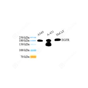 | WB检测EGFR蛋白(货号 YB151516). 样品: 经RIPA裂解液(货号Y2013)处理的蛋白质. 封闭: 3%脱脂牛奶(货号YC310012)溶于TBST溶液, 室温孵育1小时. —抗: 1: 1000稀释, 4℃ 孵育过夜. 二抗: HRP标记山羊抗兔IgG (H+L) (货号YB23314), 1: 5000稀释, 室温孵育1小时. |
