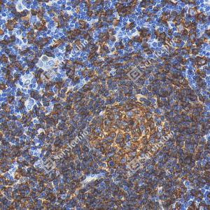 IHC检测CD20蛋白(货号 YB155732). 样品: 人扁桃体, 4%多聚甲醛 (货号Y1112) 固定12-24小时. 抗原修复: Tris-EDTA抗原修复液 (pH 9.0) (货号Y1214), 高压锅均匀喷气计时2分钟. —抗: 1: 800稀释, 4℃ 孵育过夜. 二抗: S-vision免疫组化多聚二抗(山羊抗兔),即用型 (货号Y1313), 室温孵育20分钟. |