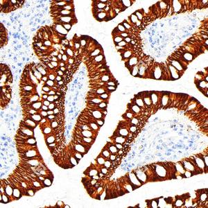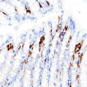 IHC检测COX2/Cyclooxygenase 2蛋白(货号 YB155683). 样品: 小鼠结肠, 4%多聚甲醛 (货号Y1112) 固定12-24小时. 抗原修复: Tris-EDTA抗原修复液(pH 9.0) (货号Y1214), 高压锅均匀喷气计时2分钟. —抗: 1: 200稀释, 4℃ 孵育过夜. 二抗: S-vision免疫组化多聚二抗(山羊抗兔),即用型 (货号Y1313), 室温孵育20分钟. |