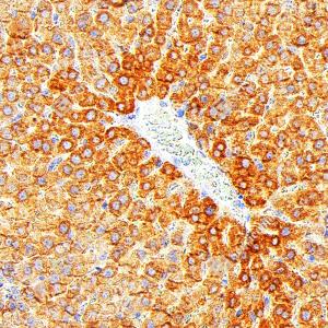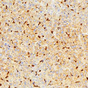 IHC检测COX2/Cyclooxygenase 2蛋白(货号 YB155683). 样品: 小鼠肝, 4%多聚甲醛 (货号Y1112) 固定12-24小时. 抗原修复: Tris-EDTA抗原修复液(pH 9.0) (货号Y1214), 高压锅均匀喷气计时2分钟. —抗: 1: 200稀释, 4℃ 孵育过夜. 二抗: S-vision免疫组化多聚二抗(山羊抗兔),即用型 (货号Y1313), 室温孵育20分钟. |