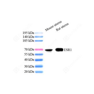 | WB检测Estrogen Receptor alpha蛋白(货号 YB15216). 样品: 经RIPA裂解液(货号Y2013)处理的蛋白质. 封闭: 3%脱脂牛奶(货号YC310012)溶于TBST溶液, 室温孵育1小时. —抗: 1: 500稀释, 4℃ 孵育过夜. 二抗: HRP标记山羊抗兔IgG (H+L) (货号YB23314), 1: 5000稀释, 室温孵育1小时. |