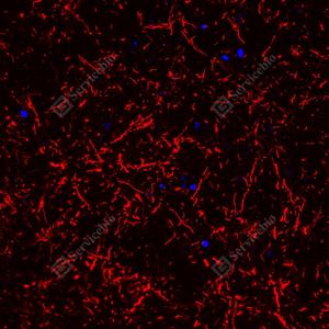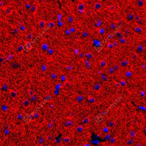 | IF检测MAP2蛋白(货号 YB155570)(红色). 样品: 小鼠脑, 4%多聚甲醛 (货号Y1112) 固定12-24小时. 抗原修复: 柠檬酸抗原修复液(干粉, pH 6.0) (Y1212), 高压锅均匀喷气计时2分钟. 封闭: 3% BSA(货号YC305021)的PBS溶液, 室温孵育30分钟. —抗: 1: 300稀释, 4℃ 孵育过夜. 二抗: Cy3标记山羊抗兔IgG (H+L) (货号YB21314), 1: 300稀释, 室温孵育1小时. |