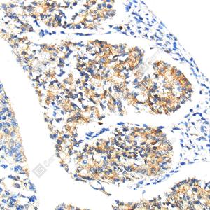 IHC检测BMP2蛋白(货号 YB15263). 样品: 人结肠癌, 4%多聚甲醛 (货号Y1112) 固定12-24小时. 抗原修复: Tris-EDTA抗原修复液(pH 9.0) (Y1214), 98℃, 20分钟. —抗: 1: 500稀释, 4℃ 孵育过夜. 二抗: S-vision免疫组化多聚二抗(山羊抗兔),即用型 (货号Y1313), 室温孵育20分钟. |