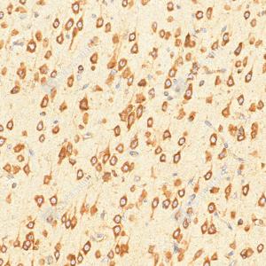 IHC检测EIF2S1蛋白(货号 YB150036). 样品: 小鼠脑, 4%多聚甲醛 (货号Y1112) 固定12-24小时. 抗原修复: Tris-EDTA抗原修复液(pH 9.0) (Y1214), 98℃, 20分钟. —抗: 1: 1000稀释, 4℃ 孵育过夜. 二抗: S-vision免疫组化多聚二抗(山羊抗兔),即用型 (货号Y1313), 室温孵育20分钟. |