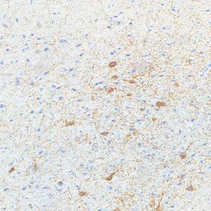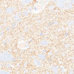 IHC检测Acetylcholinesterase蛋白(货号 YB15049). 样品: 大鼠脑, 4%多聚甲醛 (货号Y1112) 固定12-24小时. 抗原修复: 柠檬酸抗原修复液(干粉, pH 6.0) (Y1212), 高压锅均匀喷气计时2分钟. —抗: 1: 1000稀释, 4℃ 孵育过夜. 二抗: S-vision免疫组化多聚二抗(山羊抗兔),即用型 (货号Y1313), 室温孵育20分钟. |