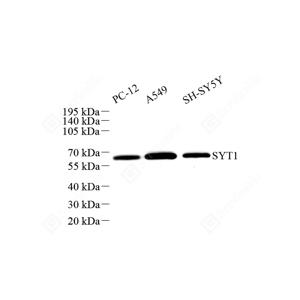 WB检测SYT1蛋白(货号 YB151141). 样品: 经RIPA裂解液(货号Y2013)处理的蛋白质. 封闭: 3%脱脂牛奶(货号YC310012)溶于TBST溶液, 室温孵育1小时. —抗: 1: 1000稀释, 4℃ 孵育过夜. 二抗: HRP标记山羊抗小鼠IgG (H+L) (货号YB23312), 1: 5000稀释, 室温孵育1小时. |