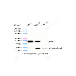 | WB检测Glucose Transporter GLUT2蛋白(货号 YB150179) . 样品: 经RIPA裂解液(货号Y2013)处理的蛋白质. 封闭: 3%脱脂牛奶(货号YC310012)溶于TBST溶液, 室温孵育1小时. —抗: 1: 500稀释, 4℃ 孵育过夜. 二抗: HRP标记山羊抗兔IgG (H+L) (货号YB23314), 1: 5000稀释, 室温孵育1小时. |