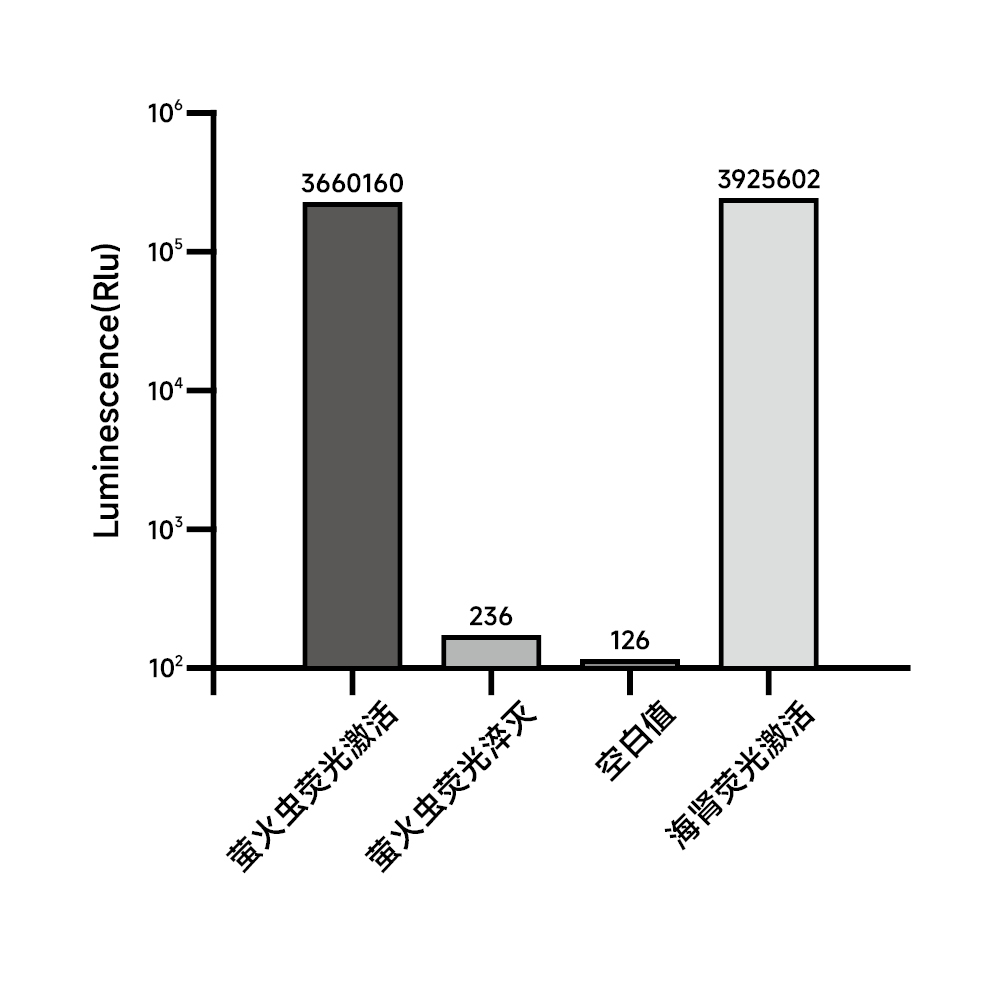 荧光素酶体系多用于报告基因检测。将目的基因的转录调控元件克隆到荧光素酶(Luciferase)的上下游,构建成报告基因(Reporter gene)质粒,然后将质粒转染导入细胞,用药物或者其他刺激物处理转染的细胞后,收集细胞并裂解,测定裂解液中的荧光素酶活性。通过荧光素酶活性判断药物等外源刺激对目的基因的转录调控作用。而双荧光体系,引入两类化学发光且检测互不干扰,一组作为检测光,一组作为内参光来消除细胞数量、转染效率等的差异。