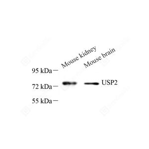 Ubiquitin, a highly conserved protein involved in the regulation of intracellular protein breakdown, cell cycle regulation, and stress response, is released from degraded proteins by disassembly of the polyubiquitin chains. The disassembly process is mediated by ubiquitin-specific proteases (USPs). USP2 is also named as UBP41. USP2 can interact indirectly with multiple clock proteins, so it remains possible that USP2 may modulate the ubiquitination and function of these other proteins. It has 4 isoforms produced by alternative splicing. This antibody is specific to the isoform 1(USP2a) of USP2.