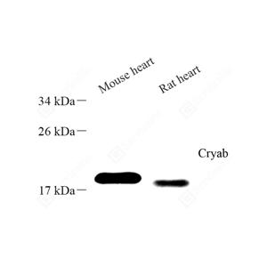 WB检测Alpha B Crystallin蛋白(货号 GB111912). 样品: 经RIPA裂解液(货号G2002)处理的蛋白质. 封闭: 封闭: 3%脱脂牛奶(货号GC310001)溶于TBST溶液, 室温孵育1小时. —抗: 1: 500稀释, 4℃ 孵育过夜. 二抗: HRP标记山羊抗兔IgG (H+L) (货号GB23303), 1: 5000稀释, 室温孵育1小时. |