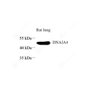 WB检测DNAJA4蛋白(货号 GB115298). 样品: 经RIPA裂解液(货号G2002)处理的蛋白质. 封闭: 3%脱脂牛奶(货号GC310001)溶于TBST溶液, 室温孵育1小时. —抗: 1: 1000稀释, 4℃ 孵育过夜. 二抗: HRP标记山羊抗兔IgG (H+L) (货号GB23303), 1: 5000稀释, 室温孵育1小时. |