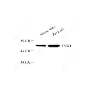 TMX4(Thioredoxin-related transmembrane protein 4) is also named as KIAA1162, TXNDC13. It is a type I transmembrane protein, with a Trx-like domain facing the ER lumen and may be to enable protein folding in cooperation with these proteins consisting of folding complex in the ER. It could work as a reductase in the environment of the ER. The full length protein has a 23 amino acid signal peptide. This antibody is specific to TMX4.