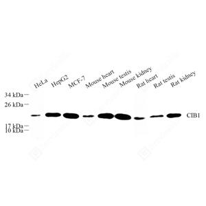WB检测CIB1/KIP蛋白(货号 GB11971). 样品: 经RIPA裂解液(货号G2002)处理的蛋白质. 封闭: 封闭: 3%脱脂牛奶(货号GC310001)溶于TBST溶液, 室温孵育1小时. —抗: 1: 500稀释, 4℃ 孵育过夜. 二抗: HRP标记山羊抗兔IgG (H+L) (货号GB23303), 1: 5000稀释, 室温孵育1小时. |