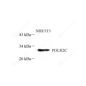 WB检测RPB3蛋白(货号 GB113315). 样品: 经RIPA裂解液(货号G2002)处理的蛋白质. 封闭: 封闭: 3%脱脂牛奶(货号GC310001)溶于TBST溶液, 室温孵育1小时. —抗: 1: 600稀释, 4℃ 孵育过夜. 二抗: HRP标记山羊抗兔IgG (H+L) (货号GB23303), 1: 5000稀释, 室温孵育1小时. |