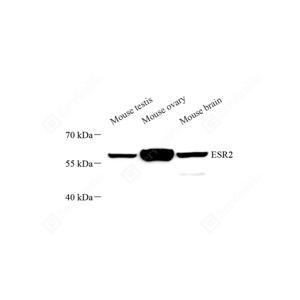 WB检测Estrogen Receptor beta蛋白(货号 GB115454). 样品: 经RIPA裂解液(货号G2002)处理的蛋白质. 封闭: 封闭: 3%脱脂牛奶(货号GC310001)溶于TBST溶液, 室温孵育1小时. —抗: 1: 1000稀释, 4℃ 孵育过夜. 二抗: HRP标记山羊抗兔IgG (H+L) (货号GB23303), 1: 5000稀释, 室温孵育1小时. |