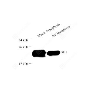 GH1, also named as GH and GH-N, belongs to the somatotropin/prolactin family. GH1 plays an important role in growth control. Its major role in stimulating body growth is to stimulate the liver and other tissues to secrete IGF-1. It stimulates both the differentiation and proliferation of myoblasts. It also stimulates amino acid uptake and protein synthesis in muscle and other tissues. This antibody has no cross reaction to CSH1.