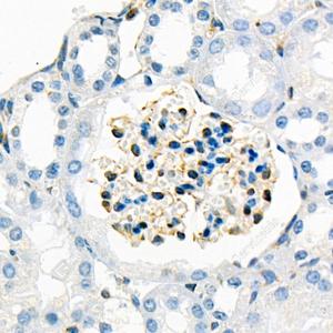 IHC检测Oxytocin Receptor蛋白(货号 GB112522). 样品: 小鼠肾, 4%多聚甲醛 (货号G1101) 固定12-24小时. 抗原修复: 柠檬酸抗原修复液(干粉, pH 6.0) (G1201), 98℃, 20分钟. —抗: 1: 500稀释, 4℃ 孵育过夜. 二抗: HRP标记山羊抗兔IgG (H+L) (货号GB23303), 1: 200稀释, 室温孵育1小时. |