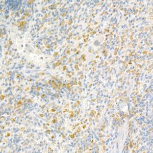 IHC检测Resistin蛋白(货号 GB112526). 样品: 大鼠脾, 4%多聚甲醛 (货号G1101) 固定12-24小时. 抗原修复: 柠檬酸抗原修复液(干粉, pH 6.0) (G1201), 98℃, 20分钟. —抗: 1: 800稀释, 4℃ 孵育过夜. 二抗: HRP标记山羊抗兔IgG (H+L) (货号GB23303), 1: 200稀释, 室温孵育1小时. |
