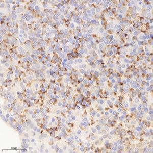IHC检测Somatostatin Receptor 2蛋白(货号 GB113275). 样品: 大鼠垂体, 4%多聚甲醛 (货号G1101) 固定12-24小时. 抗原修复: 柠檬酸抗原修复液(干粉, pH 6.0) (G1201), 98℃, 20分钟. —抗: 1: 400稀释, 4℃ 孵育过夜. 二抗: HRP标记山羊抗兔IgG (H+L) (货号GB23303), 1: 200稀释, 室温孵育1小时. |
