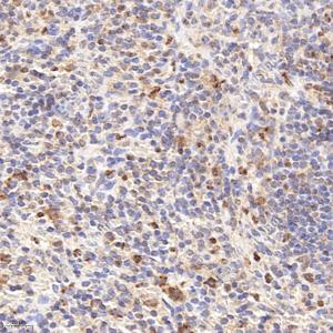 IHC检测CRF-BP蛋白(货号 GB114810). 样品: 小鼠抗原刺激模型脾脏, 4%多聚甲醛 (货号G1101) 固定12-24小时. 抗原修复: 柠檬酸抗原修复液(干粉, pH 6.0) (G1201), 98℃, 20分钟. —抗: 1: 1000稀释, 4℃ 孵育过夜. 二抗: HRP标记山羊抗兔IgG (H+L) (货号GB23303), 1: 200稀释, 室温孵育1小时. |