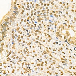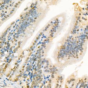 IHC检测GRK3蛋白(货号 GB112421). 样品: 小鼠结肠, 4%多聚甲醛 (货号G1101) 固定12-24小时. 抗原修复: 柠檬酸抗原修复液(干粉, pH 6.0) (G1201), 98℃, 20分钟. —抗: 1: 400稀释, 4℃ 孵育过夜. 二抗: HRP标记山羊抗兔IgG (H+L) (货号GB23303), 1: 200稀释, 室温孵育1小时. |