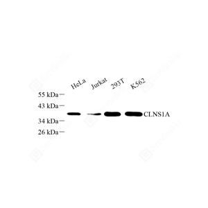 WB检测CLNS1A/CLCI蛋白(货号 GB111763). 样品: 经RIPA裂解液(货号G2002)处理的蛋白质. 封闭: 封闭: 3%脱脂牛奶(货号GC310001)溶于TBST溶液, 室温孵育1小时. —抗: 1: 500稀释, 4℃ 孵育过夜. 二抗: HRP标记山羊抗兔IgG (H+L) (货号GB23303), 1: 5000稀释, 室温孵育1小时. |