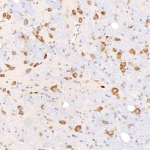 IHC检测KCNG3蛋白(货号 GB113778). 样品: 大鼠脑, 4%多聚甲醛 (货号G1101) 固定12-24小时. 抗原修复: 柠檬酸抗原修复液(干粉, pH 6.0) (G1201), 98℃, 20分钟. —抗: 1: 1000稀释, 4℃ 孵育过夜. 二抗: HRP标记山羊抗兔IgG (H+L) (货号GB23303), 1: 200稀释, 室温孵育1小时. |