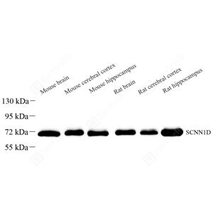 WB检测SCNN1D蛋白(货号 GB112785). 样品: 经RIPA裂解液(货号G2002)处理的蛋白质. 封闭: 封闭: 3%脱脂牛奶(货号GC310001)溶于TBST溶液, 室温孵育1小时. —抗: 1: 1000稀释, 4℃ 孵育过夜. 二抗: HRP标记山羊抗兔IgG (H+L) (货号GB23303), 1: 5000稀释, 室温孵育1小时. |