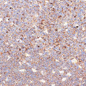 | IHC检测PKR蛋白(货号 GB151096). 样品: 人扁桃体, 4%多聚甲醛 (货号G1101) 固定12-24小时. 抗原修复: 抗原修复仪(货号 ARI-4),Tris-EDTA抗原修复液(pH 9.0) (货号G1203), 水浴100℃, 25分钟. —抗: 1: 2000稀释, 4℃ 孵育过夜. 二抗: S-vision免疫组化多聚二抗(山羊抗兔),即用型 (货号G1302), 室温孵育20分钟. |