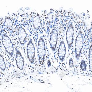 | IHC检测CREB蛋白(货号 GB15236). 样品: 人结肠, 4%多聚甲醛 (货号G1101) 固定12-24小时. 抗原修复: 抗原修复仪 (货号 ARI-4),Tris-EDTA抗原修复液(pH 9.0) (货号G1203), 水浴100℃, 25分钟. —抗: 1: 1500稀释, 4℃ 孵育过夜. 二抗: S-vision免疫组化多聚二抗(山羊抗小鼠), 即用型(货号G1301), 室温孵育20分钟. |