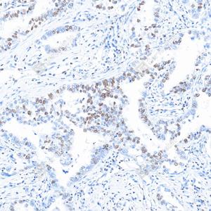 | IHC检测CREB蛋白(货号 GB15236). 样品: 人肺癌, 4%多聚甲醛 (货号G1101) 固定12-24小时. 抗原修复: 抗原修复仪 (货号 ARI-4),Tris-EDTA抗原修复液(pH 9.0) (货号G1203), 水浴100℃, 25分钟. —抗: 1: 1500稀释, 4℃ 孵育过夜. 二抗: S-vision免疫组化多聚二抗(山羊抗小鼠), 即用型(货号G1301), 室温孵育20分钟. |
